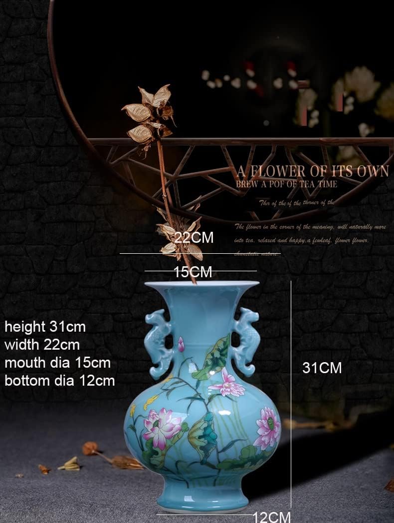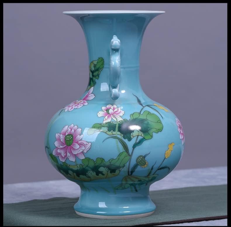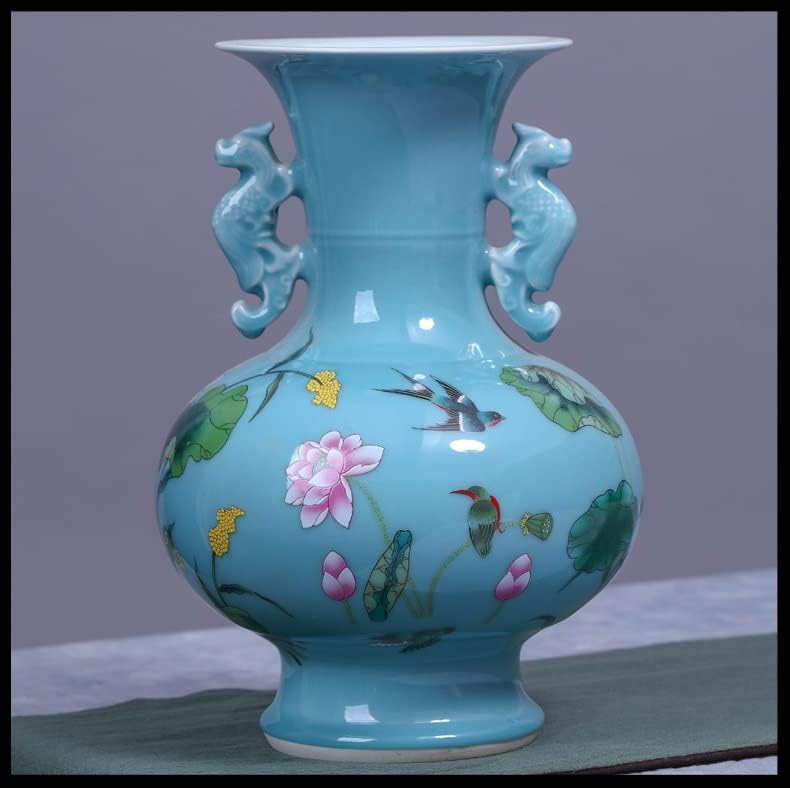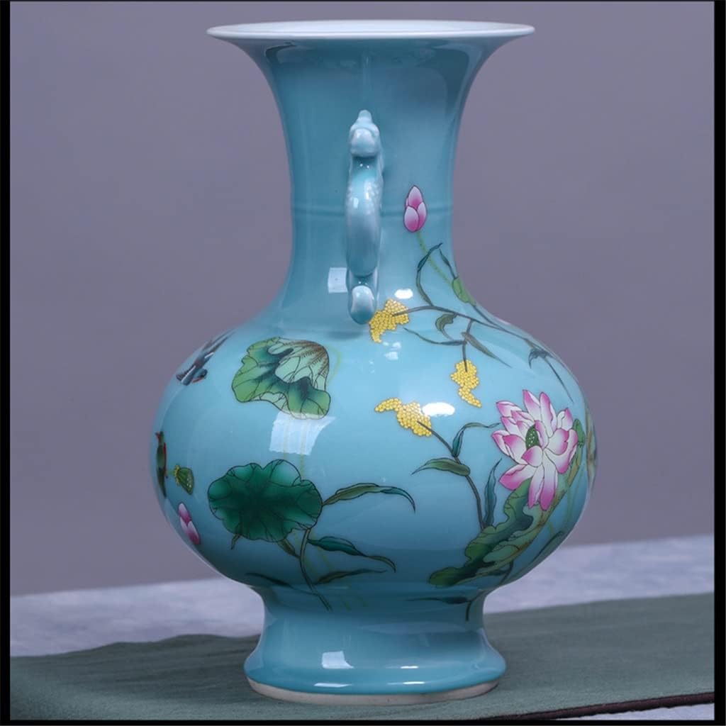 Boge Antique Celadon Vase Furnishing Articles Blue Glaze Peony Flower Study Decorative Ceramic Arts and Crafts