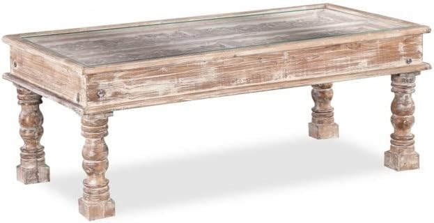 Emboss Antique Brass Work Solid Wood Window Panel Coffee Table Whitewash Coffee Table Indian Wooden Hand Carved Coffee Table Opel Coffee Table