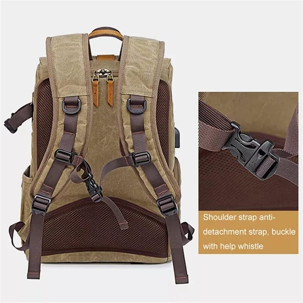 SXDS Photography Retro Waterproof Batik Canvas Backpack W USB Port Fit 15.6inch Laptop Men Camera Bag Carry Case (Color : Gray, Size : 28 * 16 * 43cm)