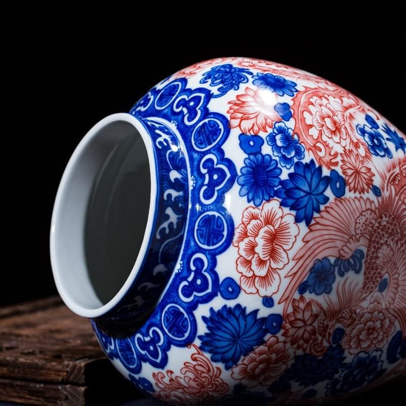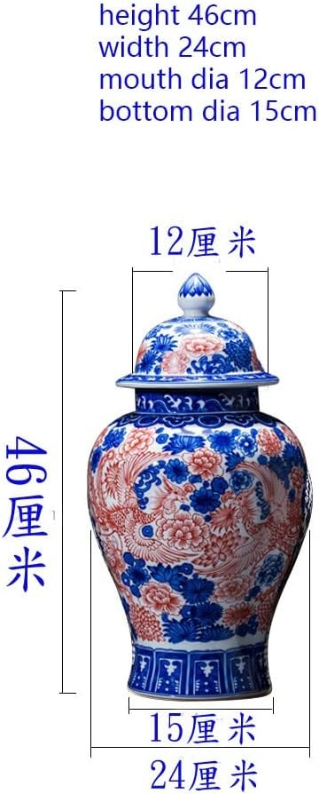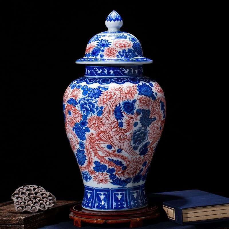 FKGJKT Jingdezhen Porcelain Antique Jar Blue and White Glaze Red General Tank Glaze