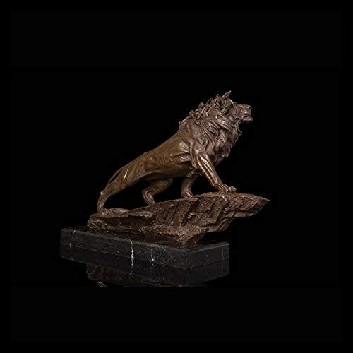 FKGJKT Antique Bronze Casting Animal Statue Sculpture Wild Animal Roaring Lion Figurines for Indoor Decoration