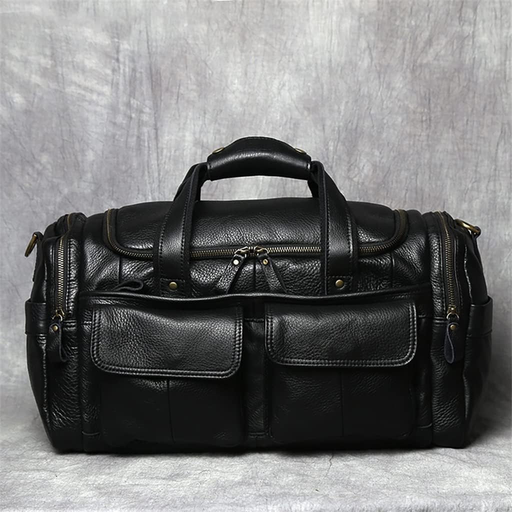 FEER Men's Hand Luggage Bag Travel Bag Genuine Leather Large Capacity Single Shoulder Messenger for 14 Inch Laptop