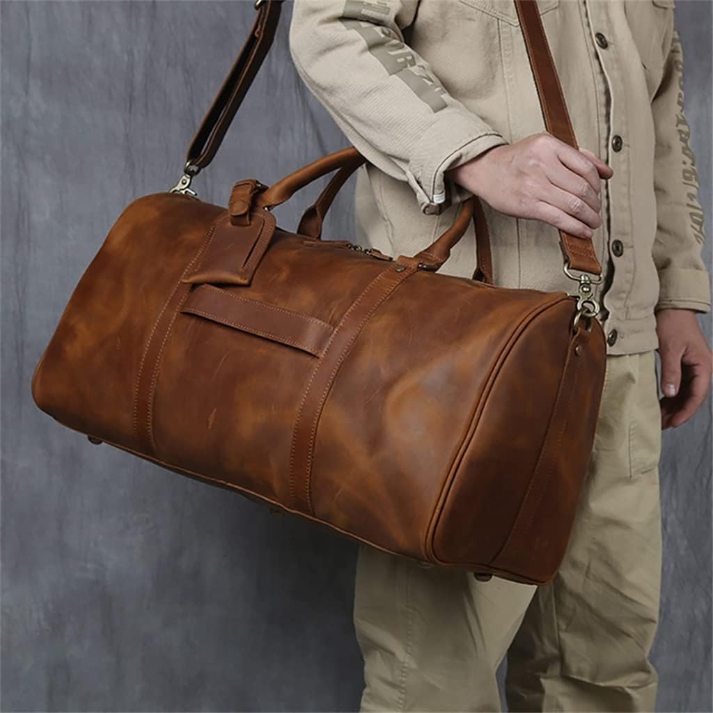 LIUJUN Retro Men's Hand Luggage Bag Travel Bag Geunine Leather Large Capacity Single Shoulder Messenger For 15 Inch Laptop
